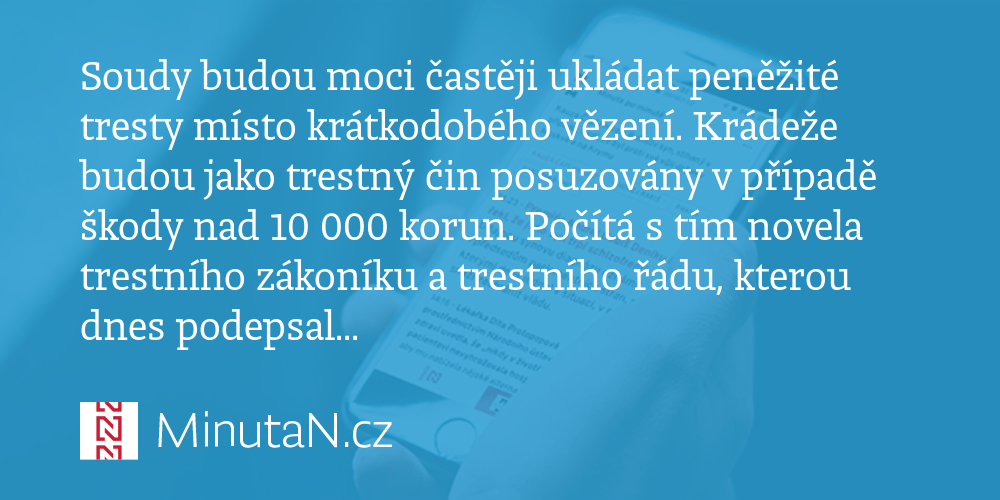 40/2009 sb., trestní zákoník, ve znění pozdějších předpisů, zákon č. 2020 byla ve sbírce zákonů publikována vyhláška č.. Soudy tak budou moci častěji ukládat peněžité tresty místo krátkodobých trestů vězení.